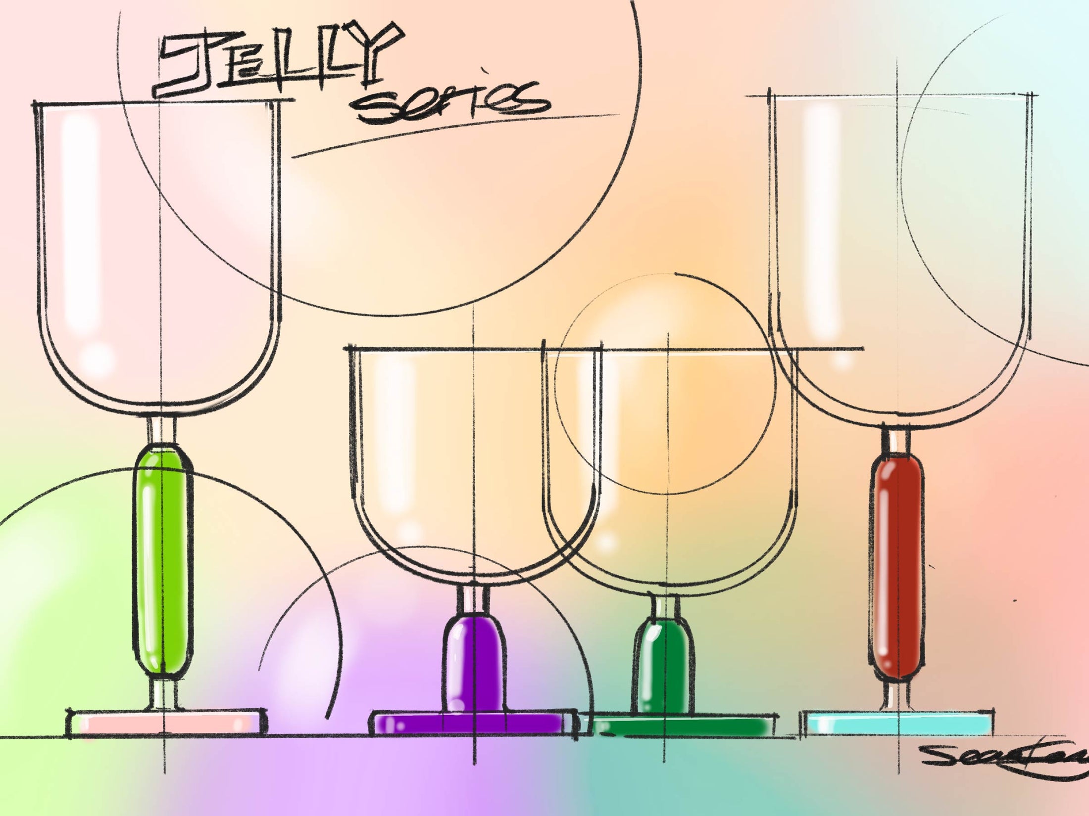 A colorful glass inspired by the softness and glow of fruit jelly